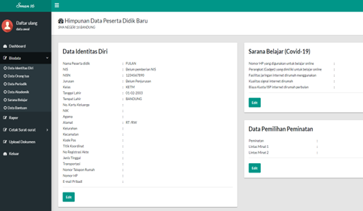 - Isi dan Lengkapi Data Siswa dengan membuka menu Biodata disebelah kiri dan pastikan semua data terisi dengan benar.