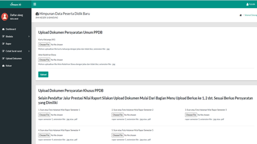 - Setelah Semua Data Diisi dan Berkas Sudah Terupload, Silakan Cetak Semua Surat yang Berada di Menu Cetak Surat-Surat untuk diserahkan ke Sekolah pada saat MPLS Bersama dokumen lainnya.